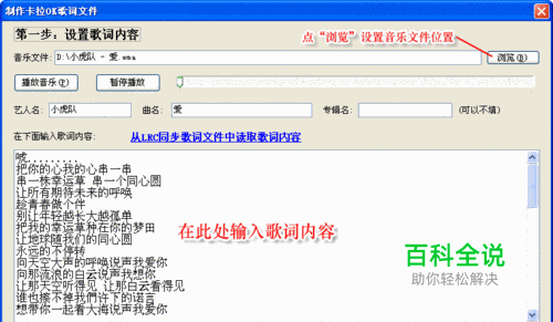 推荐,使用第二个工具轻松创建卡拉OK歌词文件,如果创建的歌词文件有不准确的地方,再用第一个工具对歌词文件进行精确调整、修改。 “轻松创建卡拉OK歌词文件”使用方法: