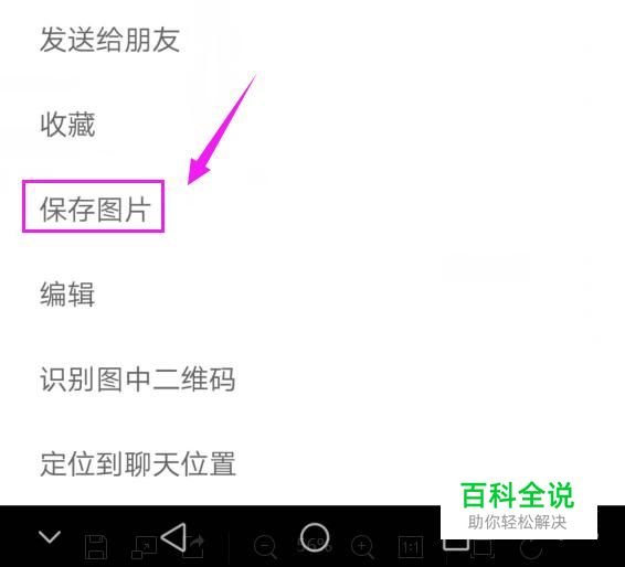我们先要保存这张二维码,按对话中的图片,放大后,选择“保存图片”到手机相册,如图。
