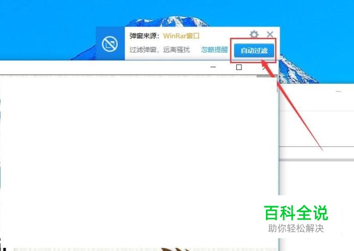 这里我们使用安全类应用软件来拦截WinRar软件的广告弹窗,打开一个压缩文件之后,在弹窗页面右上角,点击“自动过滤”按钮。