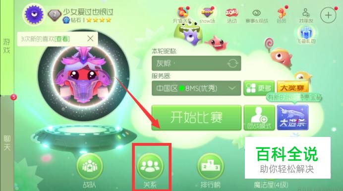 首先登录到球球大作战的页面,点击页面下方的“关系”这一项。