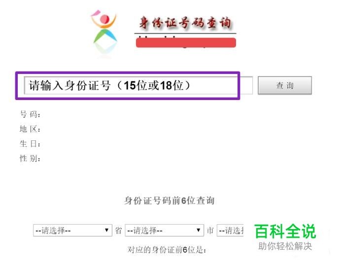 如果我们忘记身份证号码的前6位了,也可以在下面的身份证号码前6位进行查询,选择相关的省、市、区就可以查询到了。