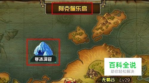 首先副本的在什么地方呢~~我们来看看 我要先来到阿克佩乐高找到寒冰洞窟(红色标记),点击进入吧~~随机找人还是自己组队看你的心情喽~嘿嘿,一个人进去试了下~~被无情的灭掉了~~