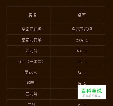 牌的大小决定不同赔率: