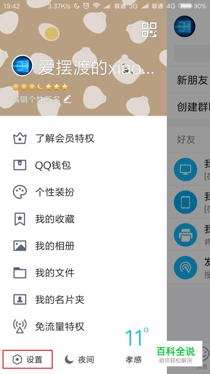打开手机QQ软件主页面,在主页面中,点击“个人头像”选项,在展开的页面中,选择“设置”选项。