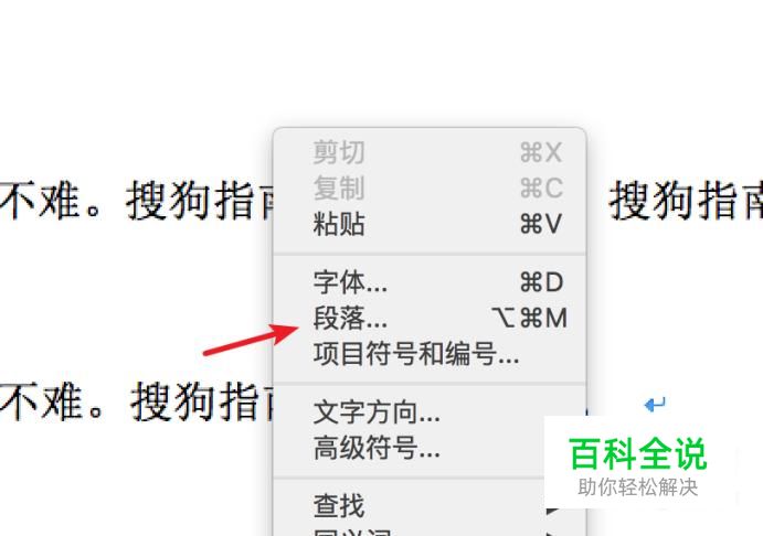 右键点击文档,点击‘段落’