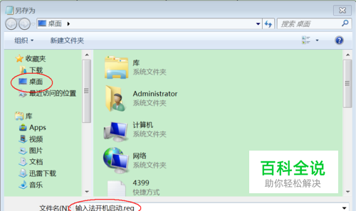 注意上图的文件名 输入法开机启动.reg ,后缀名.reg不能丢,然后点击桌面上的 输入法开机启动.reg 文件, 系统会提示“确实要把xxx.reg内的信息添加到注册表吗?”,单击“是”添加,再重启电脑。