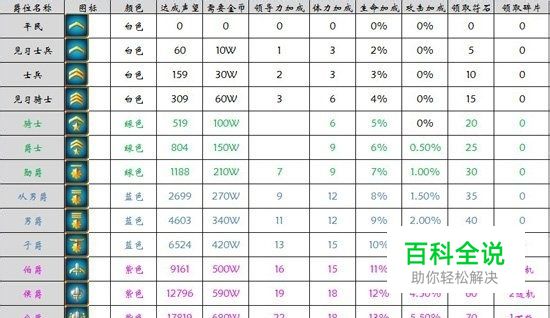 我叫mt爵位奖励 我叫mt3.2爵位全数值一览表 2025-05-31 13:06:45 操作方法 01 我叫mt3.2爵位全数值一览表,新版本上线后数据有所更改,很多朋友还是保留以前的数据,赶紧更换啦!下表格详细的为大家介绍我叫mt3.2爵位等级、奖励、颜色等。 赞 (0) 相关推荐 《王者之剑OL》爵位排名奖励获得攻略 操作方法 01 <王者之剑OL>是一款大型2D横版手机网络游戏.在游戏中,玩家所能参与的活动数不胜数,诸如牛毛啊~其中,竞技场和其他玩家进行PK时,无论胜败与否,都能获得声望!声望越高,爵 ... 《我叫MT》3.1改动介绍 蓝贴解读 操作方法 01 我叫MT官方发布新蓝贴,对3.1版本的改动思路已经提前告知,从蓝贴可以看出3.1的思路,不是对3.0的丰富和补充,而是对3.0之前存在的遗留问题进行解决,添加了一点游戏内容,并不算一次 ... 大唐无双手游爵位任务介绍 在大唐无双手游中,玩家可以通过每日完成爵位任务来获得声望,当声望达到相关要求后即可提升爵位,爵位会获得相应的奖励,下面介绍一下爵位任务. 大唐无双手游爵位任务 01 以任务指引为例,在左侧任务栏中点击 ... 《血族》新手攻略:竞技场篇 操作方法 01 玩家可以通过点击"竞技场",进入选择PK玩家的界面,加入玩家卡牌对战的行列.玩家在竞技场中,可以自由选择系统给出的PK对象.其中既有强于自己的对手,也有相对弱势的对 ... 剑与家园怎么快速增加军队容量 剑与家园怎么提升部队容量,那么下面就让小编为大家介绍一下提升方法,一起来看看吧. 操作方法 01 玩家可以通过以下4种方提升部队容量: 02 人族升级指挥中心,矮人族升级征兵处.巫妖族升级通灵塔 03 ... 《王者之剑》新手攻略:16个经验和见解 <王者之剑>新手攻略:16个经验和见解1-5 01 1.每天打了中午12-14点.22-24的"战神殿堂"后再领取奖励-竞技场奖励-爵位奖励.荣誉金币会多一点.三级伯爵 ... 《龙战》每日9大事项 主打正统魔幻主题的新版<龙战>已上线多日,作为一款RPG+SLG的网页游戏,新版<龙战>丰富的玩法和精致的剧情带来颇多的亮点.对于其海量的游戏内容,不少新手玩家表示一时无法 ... 《王者之剑》新人必玩进阶教程攻略 <王者之剑>新人必玩进阶教程攻略 操作方法 01 1.每天打了中午12-14点.22点-24点的"战神殿堂"后再领取奖励-竞技场奖励-爵位奖励.荣誉金币会多一点.三级伯 ... 手机百度积分可以兑换百度网盘7天会员 相信使用手机百度的小伙伴都知道,通过每天的签到和做任务都可以领到很多积分奖励哦.攒够一定的数值后,可以在手机百度中兑换百度网盘7天会员呢.小伙伴们一起来看一下吧. 操作方法 01 首先我们要打开手机上 ...