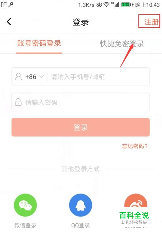 在登录界面,我们点击“注册”,如图所示。