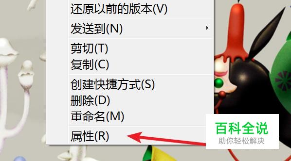 右键点击桌面上的这个有问题的图标,以Excel为例,在右键菜单上点击‘属性’