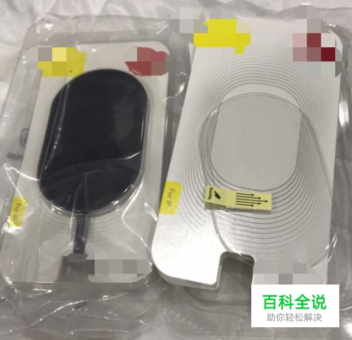 然后,将无线充电接收器的贴片对准手机接口插入,再将无线充电接收器的背贴贴在iPhone 7的背面。