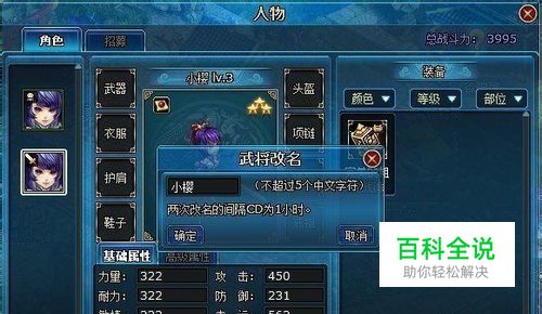 武将改名 进入人物界面,点击左侧需要改名武将头像,可以看到武将页面,在下面的改名处,为该武将改名。