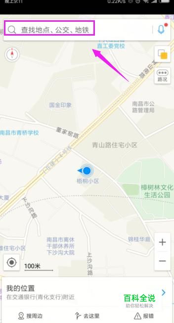 在高德地图首页,我们点击搜索,如图。