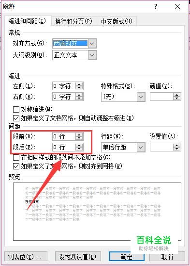 在段落的设置界面,可以看到段前、段后间距的设置栏,键入需要的值,可以设置字符的上下间距。