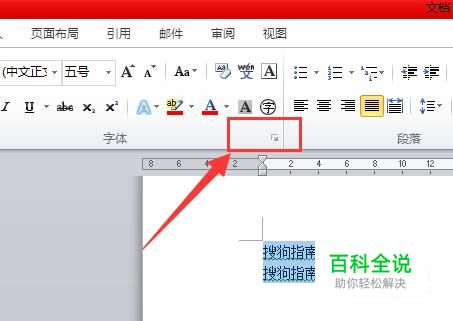我们选中文档中的文字,然后点击界面上方"字体"栏右下角的箭头,进入字体的设置界面。
