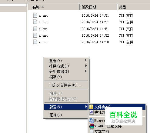 先在窗口的空白处单击鼠标右键,依次选择“新建--文件夹”,点击鼠标左键确认,然后将要压缩的所有文件都移动或COPY到这个文件夹中。 (除了新建文件夹外,这一步也可以用全选的方式,但考虑到要打包的各个文件可能不在同一文件夹中,还是新建个文件夹相对简便些)。