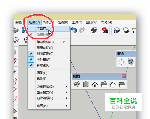 刚开始使用草图大师,有的人会发现自己缺少某些工具栏。那么怎么找到其他工具栏呢,首先在菜单中找到视图,然后选择“工具栏”选项。