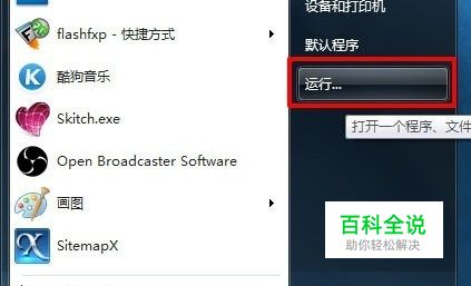 共享端:点击电脑左面左下角的windows开始菜单,点击运行。
