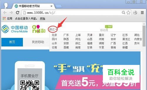 首先我们打开移动网上营业厅,进入后先选择一下移动号码的所在地区。