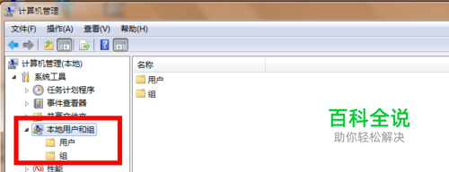 这时候就会看到"本地用户和组"。双击它,这时候就会看到用户选项。