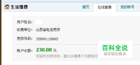 接下来就是见证奇迹的时刻,我们已经清楚的看到自己宽带账号的余额了,一目了然哦~费用充足,无需缴费,大家赶快试试吧。