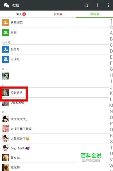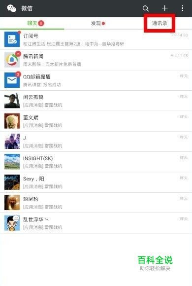 启动微信手机端!在首页面选择上方的通讯录选项!如下图所示!