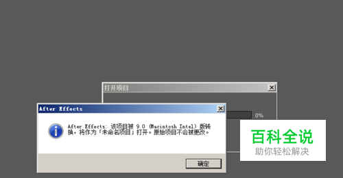 错误二:未安装QuickTime软件。在打开下载好的模板时弹出如下图所示的提示时,说明你的电脑上未安装QuickTime软件,AE软件不能读取.MOV格式的视频文件。 解决方案:去下载安装QuickTime软件,然后重新启动AE软件,再打开模板即可解决问题。