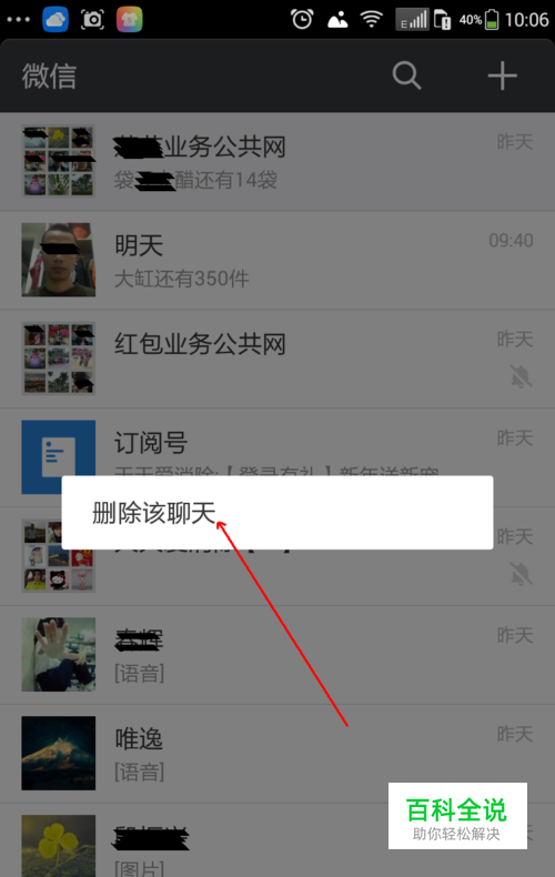 不需要保存的微信聊天记录可以直接删除掉,可以在微信 主页中选择要清理的对象,直接删除即可.