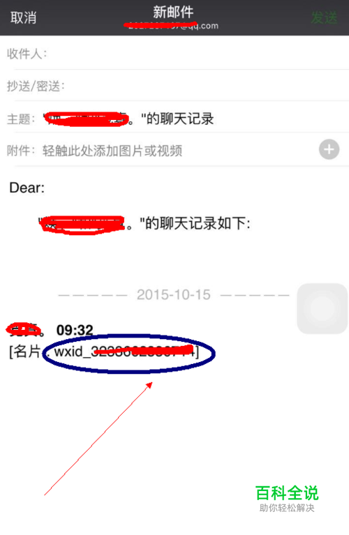 这样你就收到了一张你所丢失账号的个人名片。然后长按该名片,保存信息到邮件。