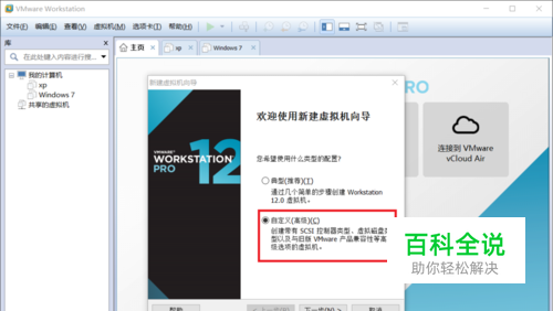 第一步:选择 创建新的虚拟机。然后选择 自定义(高级),然后选择 下一步。