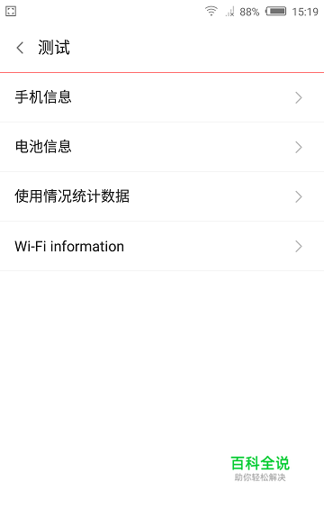 显示手机信息、电池信息、电池记录、使用统计数据、WiFi 信息 进入方法: *#*#4636#*#*