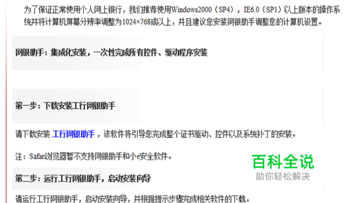 点击如上图蓝圈位置的网银助手,后续页面如下图,点击蓝字部分后可以选择下载网银助手到本地或者直接在页面上选择安装,按照帮助页面上的提示进行即可,之后在任务栏中就会出现网银助手图标。