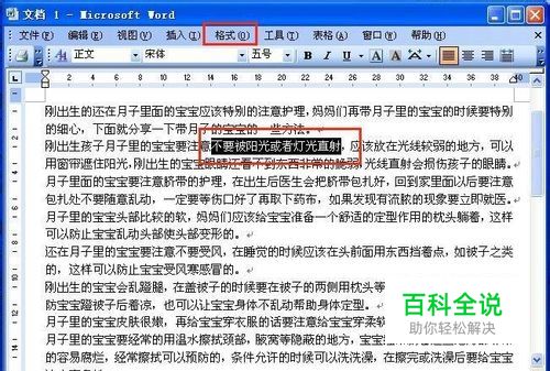 word文档中要设置底纹的文字选中以后,点击窗口上面工具栏里面的格式
