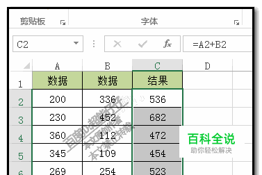 本文举例演示操作方法。 以下图中的表格数据为。操作环境是2013版本。 C列中结果是带公式的。现在需要把公式去除保留数值。