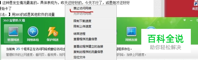 【解决方法:】用36蛋的或是其他软件的流量禁用在上传流量或是下载流量的程序即可。如图所示