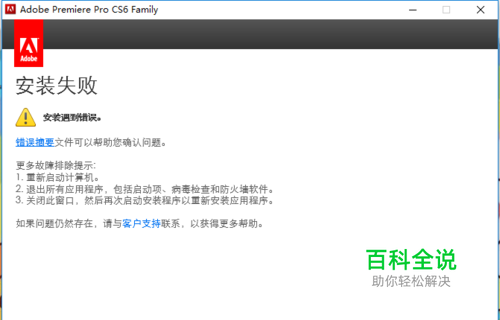 如下图中内容所示,在我们安装adobe premiere pro cs6的时候,出现安装失败的图案,这是什么问题,小编给大家做出图解