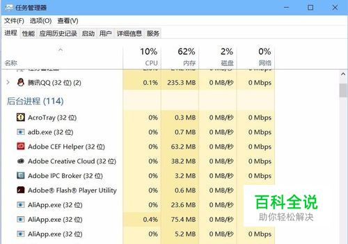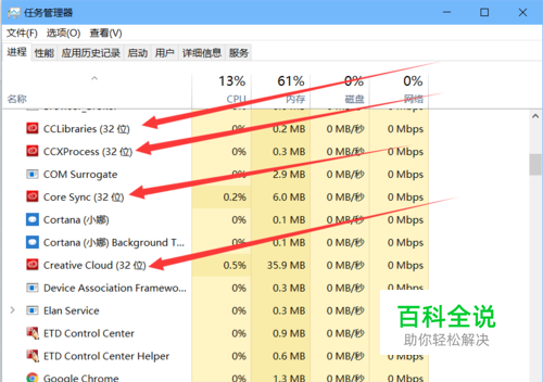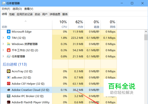 点击选择Adobe Creative Cloud这个程序,然后点击右下角的 结束任务,这样就强制性退出了