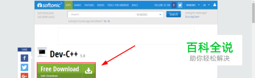 进入Dev C++下载页,找到Download(下载)并用鼠标左键单击下载,开始下载Dev C++软件。