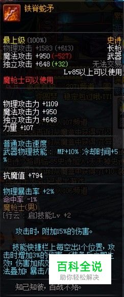 85级史诗长枪: 荒古遗尘长枪: 安徒恩荒古武器,技能攻击力 + 35%是亮点
