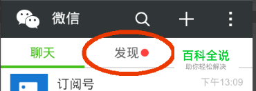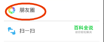 点击发现以后进入到发现窗口,在发现窗口上面点击朋友圈