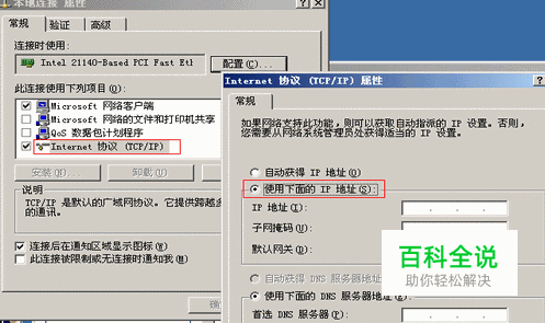 如果电脑是接集线器或交换机上网,请在本地连接上点击右键?D属性,选择INTERNET协议(TCP/IP),再点击属性,给电脑设置一个固定IP地址,网关要设置成局域网主机的IP,DNS地址可以联系网管或ISP确认,设置方法如下图:
