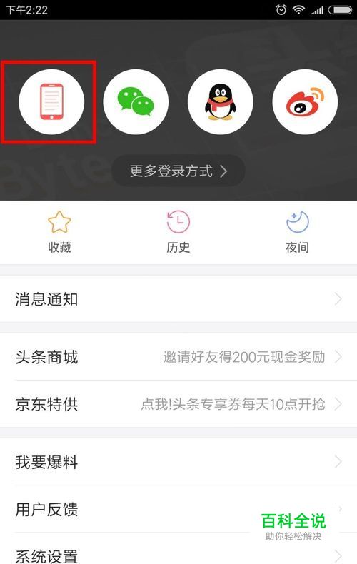 首先,打开今日头条APP,选择登录方式为手机登录。