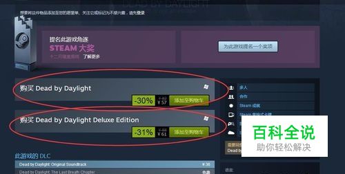 往下翻,就可以看到了,分别是 Dead by Daylight (黎明杀机标准版) 原价82元 Dead by Daylight Deluxe Edition(黎明杀机豪华版)原价88 活动期间有优惠以及打折,比如今天11月24日感恩节,标准版只需57元。