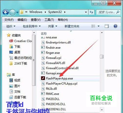 接着在弹出界面列表中找到System32的文件夹并打开。打开之后,接着在它的列表中找到Flash PlayerApp.exe的应用程序。这个应用程序也就是设置管理器的应用程序。