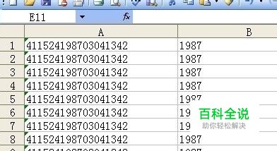 在需要输出年龄的列输入公式:=MID(A1,7,4) 解释一下,A1代表单元格,7代表从第7个字符开始截取,4代表一共截取4个字符 这样输出的数据就是出生的年份