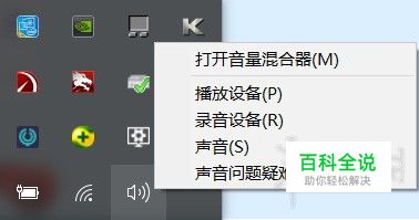 首先找到桌面右下角的声音图标,鼠标右键点击,接着点击播放设备。
