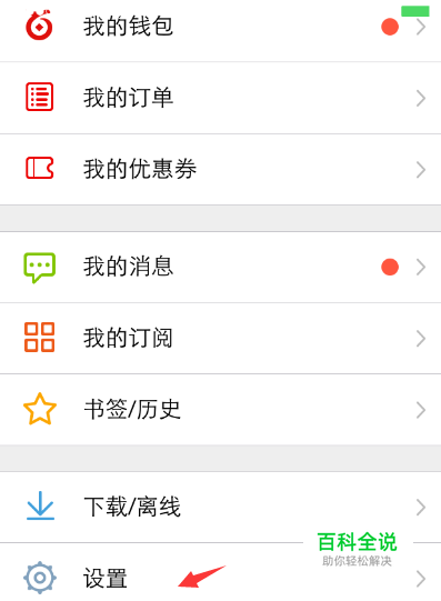 打开进入我选项下,我们在这里找到最后一个选项“设置”选项功能并点击打开。