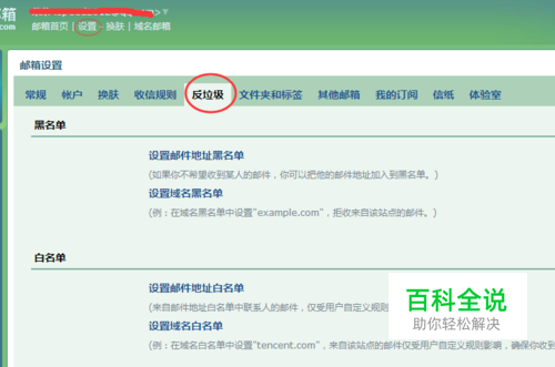 点击最上方的“设置”,找到“反垃圾”,将“垃圾邮件处理”,修改为“接收”