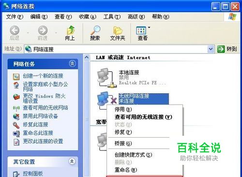 此时弹出“网络连接”再次右键点击“无线网络连接”属性。