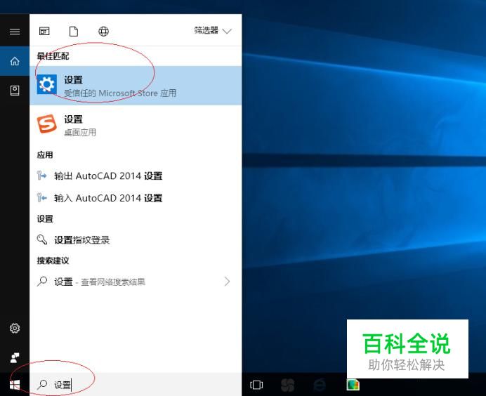 任务栏搜索框输入"设置",点击最近匹配项。