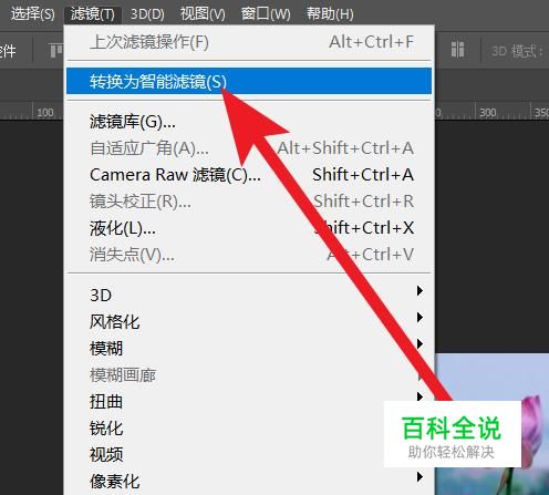 打开PS软件,选择上面滤镜-滤镜库,选择转换为智能滤镜也可以。